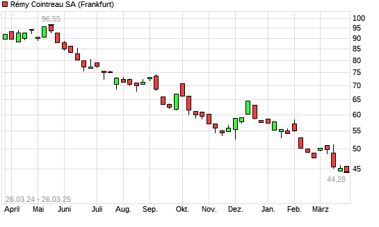 Mit dem Rücksetzer auf 44,48 EUR hat die Remy Cointreau-Aktie (ISIN FR0000130395) am 25.03.2025 ein neues 10-Jahres-Tief erreicht und damit den Kurs vom 17.03.2025 eingestellt.