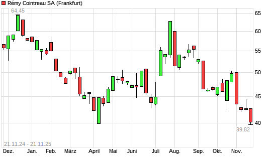 Mit dem Rücksetzer auf 40,18 EUR hat die Remy Cointreau-Aktie (ISIN FR0000130395) am 20.11.2025 ein neues 6-Monats-Tief erreicht und damit den Kurs vom 19.11.2025 eingestellt.