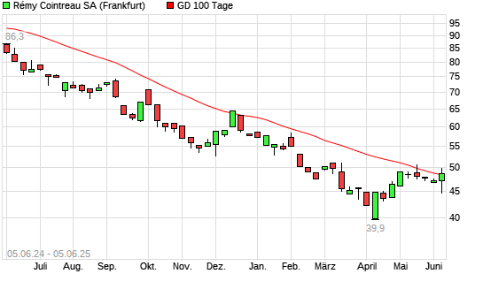 Mit dem Anstieg auf 49,72 EUR hat die Remy Cointreau-Aktie am 04.06.2025 die 100-Tage-Linie nach oben gekreuzt.