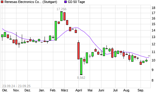 Mit dem Anstieg auf 10,45 EUR hat die Renesas Electronics-Aktie am 22.09.2025 die 50-Tage-Linie nach oben gekreuzt.