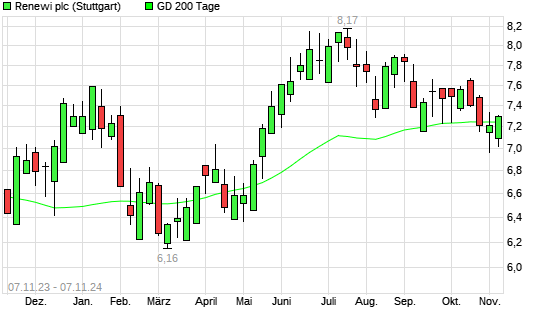 Mit dem Anstieg auf 7,38 EUR hat die Renewi-Aktie am 06.11.2024 die 200-Tage-Linie nach oben gekreuzt.