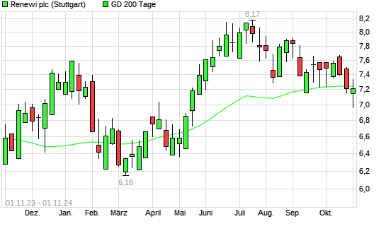 Mit dem Rücksetzer auf 7,20 EUR hat die Renewi-Aktie am 31.10.2024 die 200-Tage-Linie nach unten gekreuzt.