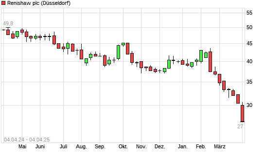 Mit dem Rücksetzer auf 29,40 EUR hat die Renishaw-Aktie (ISIN GB0007323586) am 03.04.2025 ein neues 5-Jahres-Tief erreicht und damit den Kurs vom 31.03.2025 eingestellt.