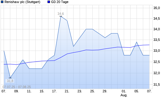 Mit dem Anstieg auf 34,00 EUR hat die Renishaw-Aktie am 06.08.2025 die 20-Tage-Linie nach oben gekreuzt.