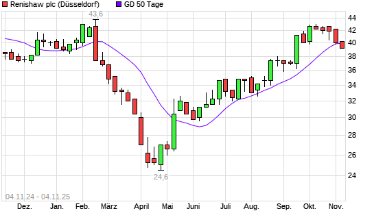 Mit dem Anstieg auf 40,40 EUR hat die Renishaw-Aktie am 03.11.2025 die 50-Tage-Linie nach oben gekreuzt.