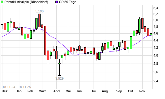 Mit dem Anstieg auf 4,56 EUR hat die Rentokil Initial-Aktie am 17.11.2025 die 50-Tage-Linie nach oben gekreuzt.