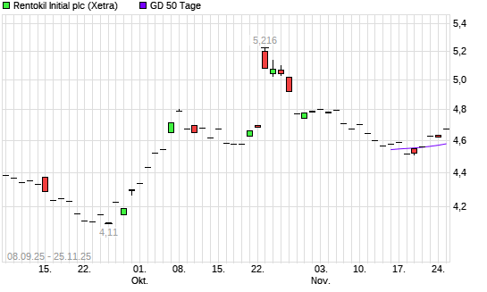 Mit dem Anstieg auf 4,60 EUR hat die Rentokil Initial-Aktie am 24.11.2025 die 50-Tage-Linie nach oben gekreuzt.