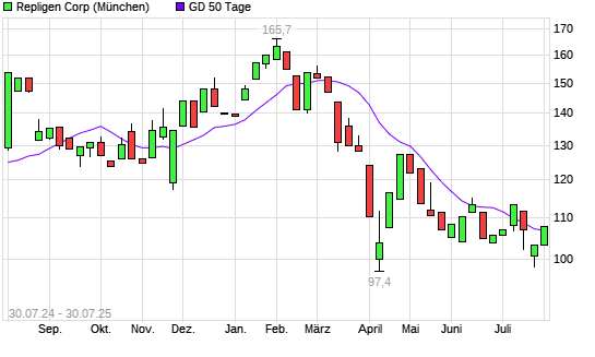 Mit dem Anstieg auf 109,05 EUR hat die Repligen Corporation-Aktie am 29.07.2025 die 50-Tage-Linie nach oben gekreuzt.