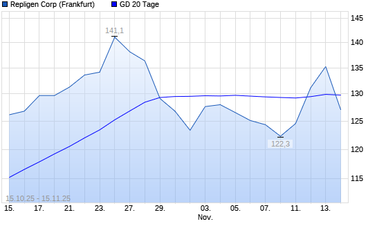 Mit dem Rücksetzer auf 127,05 EUR hat die Repligen Corporation-Aktie am 14.11.2025 die 20-Tage-Linie nach unten gekreuzt.