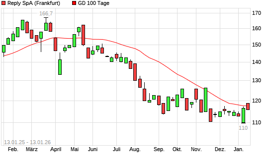 Mit dem Anstieg auf 118,80 EUR hat die Reply-Aktie am 12.01.2026 die 100-Tage-Linie nach oben gekreuzt.
