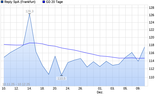 Mit dem Rücksetzer auf 113,90 EUR hat die Reply-Aktie am 09.12.2025 die 20-Tage-Linie nach unten gekreuzt.