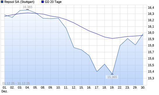 Mit dem Anstieg auf 15,98 EUR hat die Repsol-Aktie am 30.12.2025 die 20-Tage-Linie nach oben gekreuzt.