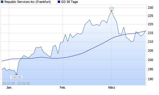Mit dem Anstieg auf 216,40 EUR hat die Republic Services-Aktie am 21.03.2025 die 38-Tage-Linie nach oben gekreuzt.