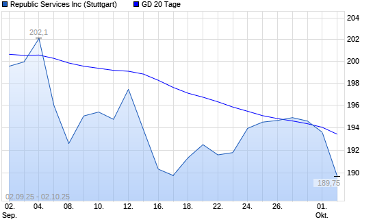 Mit dem Rücksetzer auf 193,80 EUR hat die Republic Services-Aktie am 01.10.2025 die 20-Tage-Linie nach unten gekreuzt.