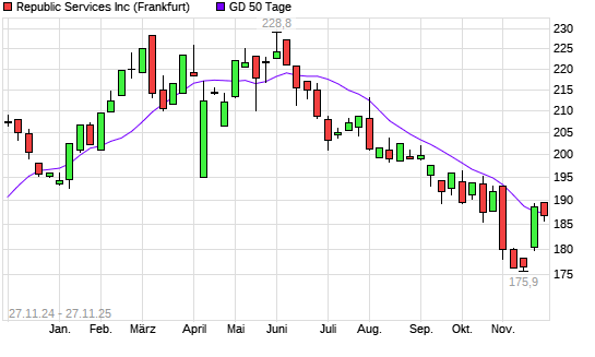Mit dem Rücksetzer auf 187,05 EUR hat die Republic Services-Aktie am 26.11.2025 die 50-Tage-Linie nach unten gekreuzt.
