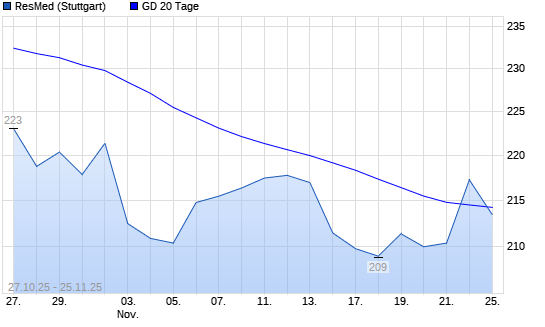 Mit dem Anstieg auf 214,80 EUR hat die Resmed-Aktie am 24.11.2025 die 20-Tage-Linie nach oben gekreuzt.