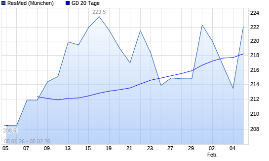 Mit dem Anstieg auf 217,00 EUR hat die Resmed-Aktie am 04.02.2026 die 20-Tage-Linie nach oben gekreuzt.