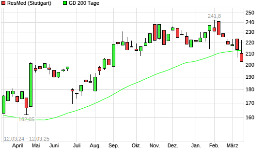 Mit dem Rücksetzer auf 207,60 EUR hat die Resmed-Aktie am 11.03.2025 die 200-Tage-Linie nach unten gekreuzt.Die Resmed-Aktie befand sich seit dem 10.03.2025 im langfristigen Aufwärtstrend ...weiterlesen