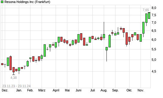 Mit dem Anstieg auf 7,65 EUR hat die Resona Holdings-Aktie (ISIN JP3500610005) am 22.11.2024 ein neues 10-Jahres-Hoch erreicht und damit den Kurs vom 21.11.2024 eingestellt.
