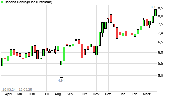 Mit dem Anstieg auf 8,25 EUR hat die Resona Holdings-Aktie (ISIN JP3500610005) am 18.03.2025 ein neues 10-Jahres-Hoch erreicht und damit den Kurs vom 03.12.2024 eingestellt.