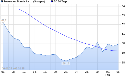 Mit dem Anstieg auf 59,54 EUR hat die Restaurant Brands International-Aktie am 04.02.2025 die 20-Tage-Linie nach oben gekreuzt.