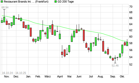 Mit dem Anstieg auf 58,94 EUR hat die Restaurant Brands International-Aktie am 15.10.2025 die 200-Tage-Linie nach oben gekreuzt.