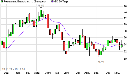 Mit dem Anstieg auf 64,00 EUR hat die Restaurant Brands International-Aktie am 14.11.2024 die 50-Tage-Linie nach oben gekreuzt.
