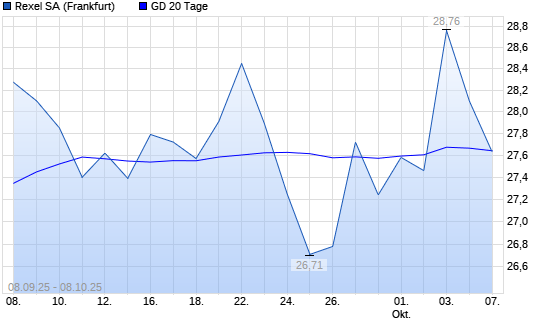 Mit dem Rücksetzer auf 27,63 EUR hat die Rexel-Aktie am 07.10.2025 die 20-Tage-Linie nach unten gekreuzt.