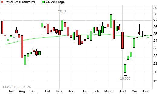 Mit dem Rücksetzer auf 24,74 EUR hat die Rexel-Aktie am 13.06.2025 die 200-Tage-Linie nach unten gekreuzt.