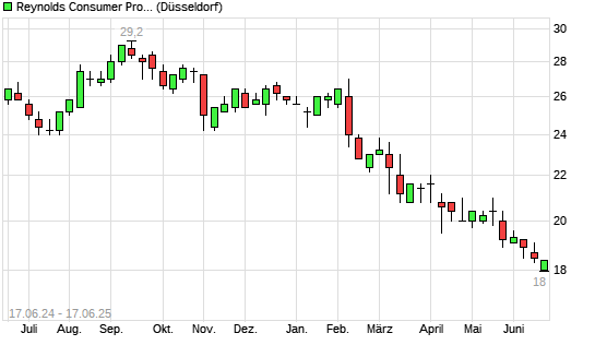 Mit dem Rücksetzer auf 17,20 EUR hat die Reynolds Consumer Products-Aktie (ISIN US76171L1061) am 16.06.2025 ein neues All-Time-Low erreicht und damit den Kurs vom 06.06.2025 eingestellt.