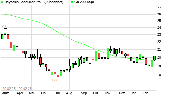 Mit dem Anstieg auf 19,10 EUR hat die Reynolds Consumer Products-Aktie am 19.02.2026 die 200-Tage-Linie nach oben gekreuzt.