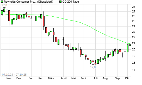 Mit dem Rücksetzer auf 19,70 EUR hat die Reynolds Consumer Products-Aktie am 06.10.2025 die 200-Tage-Linie nach unten gekreuzt.