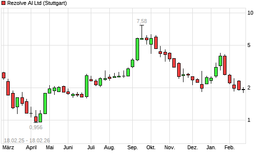 Mit dem Rücksetzer auf 1,89 EUR hat die Rezolve AI-Aktie (ISIN GB00BQH8G337) am 17.02.2026 ein neues 6-Monats-Tief erreicht und damit den Kurs vom 16.02.2026 eingestellt.