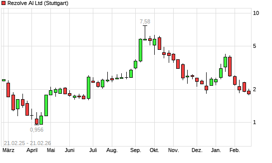 Mit dem Rücksetzer auf 1,85 EUR hat die Rezolve AI-Aktie (ISIN GB00BQH8G337) am 20.02.2026 ein neues 6-Monats-Tief erreicht und damit den Kurs vom 19.02.2026 eingestellt.