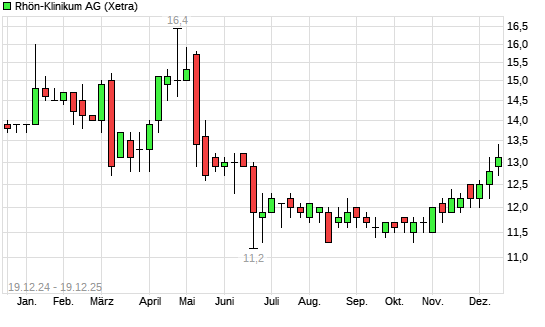 Mit dem Anstieg auf 13,00 EUR hat die Rhön-Klinikum-Aktie (ISIN DE0007042301) am 18.12.2025 ein neues 6-Monats-Hoch erreicht und damit den Kurs vom 18.06.2025 eingestellt.