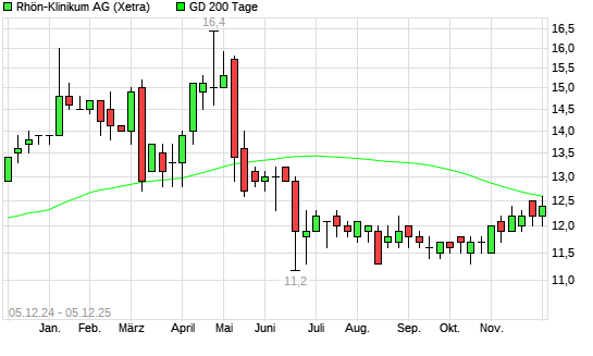 Mit dem Anstieg auf 12,50 EUR hat die Rhön-Klinikum-Aktie am 04.12.2025 die 200-Tage-Linie nach oben gekreuzt.