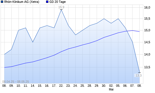 Mit dem Rücksetzer auf 14,90 EUR hat die Rhön-Klinikum-Aktie am 07.05.2025 die 20-Tage-Linie nach unten gekreuzt.