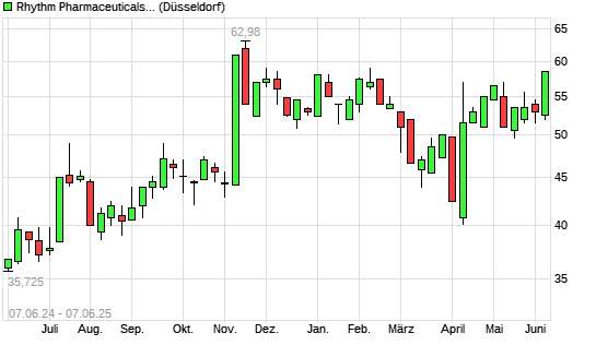 Mit dem Anstieg auf 58,00 EUR hat die Rhythm Pharmaceuticals-Aktie (ISIN US76243J1051) am 06.06.2025 ein neues 6-Monats-Hoch erreicht und damit den Kurs vom 03.01.2025 eingestellt.Die Rhythm ...weiterlesen