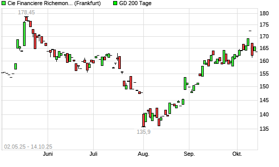 Mit dem Anstieg auf 165,65 EUR hat die Richemont-Aktie am 13.10.2025 die 200-Tage-Linie nach oben gekreuzt.