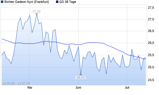 Mit dem Anstieg auf 25,36 EUR hat die Richter Gedeon-Aktie am 10.07.2025 die 38-Tage-Linie nach oben gekreuzt.