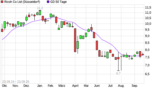 Mit dem Anstieg auf 7,75 EUR hat die Ricoh-Aktie am 22.09.2025 die 50-Tage-Linie nach oben gekreuzt.