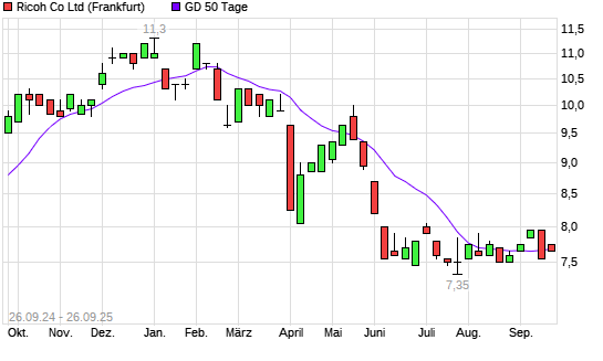 Mit dem Anstieg auf 7,70 EUR hat die Ricoh-Aktie am 25.09.2025 die 50-Tage-Linie nach oben gekreuzt.