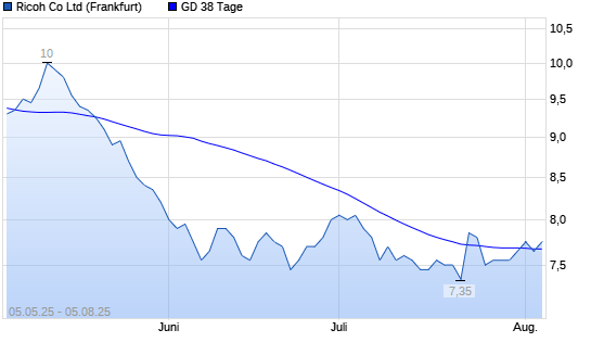 Mit dem Rücksetzer auf 7,65 EUR hat die Ricoh-Aktie am 04.08.2025 die 38-Tage-Linie nach unten gekreuzt.