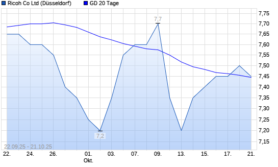 Mit dem Anstieg auf 7,55 EUR hat die Ricoh-Aktie am 20.10.2025 die 20-Tage-Linie nach oben gekreuzt.Die Ricoh-Aktie befindet sich seit dem 14.05.2025 im langfristigen Abwärtstrend und hat in ...weiterlesen