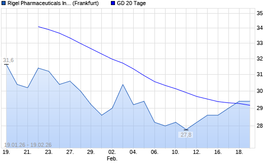 Mit dem Anstieg auf 29,40 EUR hat die Rigel Pharmaceuticals-Aktie am 18.02.2026 die 20-Tage-Linie nach oben gekreuzt.