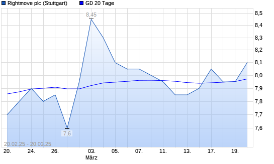Mit dem Rücksetzer auf 8,05 EUR hat die Rightmove PLC-Aktie am 19.03.2025 die 20-Tage-Linie nach unten gekreuzt.