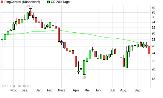 Mit dem Rücksetzer auf 23,90 EUR hat die RingCentral-Aktie am 01.10.2025 die 200-Tage-Linie nach unten gekreuzt.