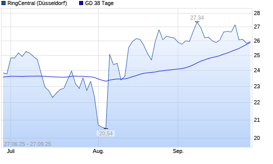 Mit dem Rücksetzer auf 25,70 EUR hat die RingCentral-Aktie am 26.09.2025 die 38-Tage-Linie nach unten gekreuzt.