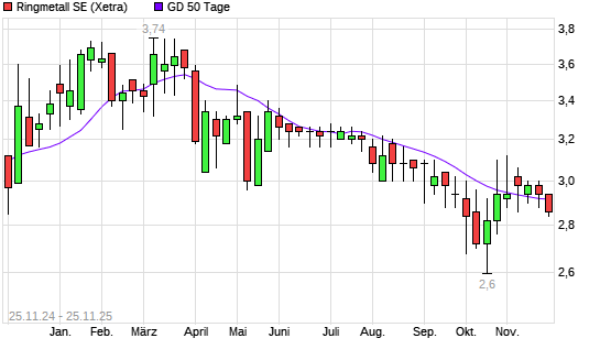 Mit dem Anstieg auf 2,82 EUR hat die Ringmetall-Aktie am 24.11.2025 die 50-Tage-Linie nach oben gekreuzt.