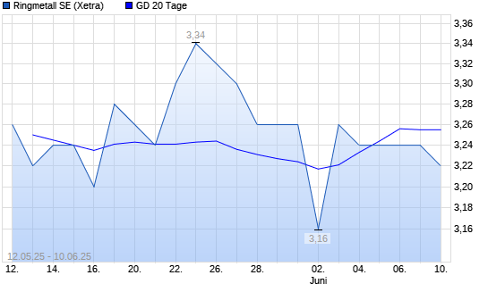Mit dem Rücksetzer auf 3,12 EUR hat die Ringmetall-Aktie am 09.06.2025 die 20-Tage-Linie nach unten gekreuzt.